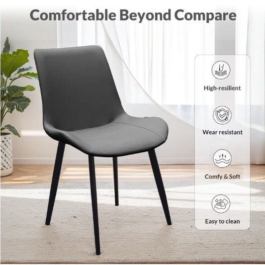 Grey Pu Leather Dining Chair With Metal Legs Modern Upholstered Chair Set Of 4 For Kitchen
